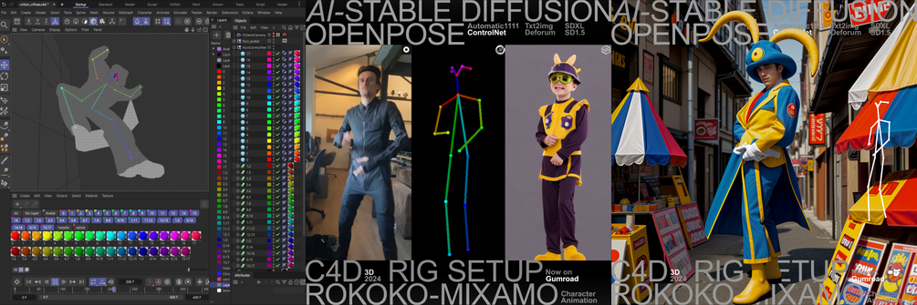 - C4D (3D / v.2024.4.1) → Custom Open Pose Rig + Viewport renderer